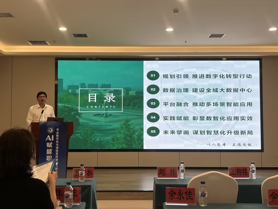 分享中,焦宇知副校长围绕学校概况、智慧校园顶层设计与实践路径、特色应用场景、关键成果及未来规划展开,重点介绍我校以“规范、高效、融合、共享”为目标,构建服务专业数字化与课程思政建设的“一门户三中台多场景”数字校园实践:通过建设全域大数据中心夯实数据底座,迭代师生应用打造全场景智能平台,深化AI赋能升级服务效能,形成数据驱动的智慧治理体系,为专业数字化转型与课程思政落地提供支撑。