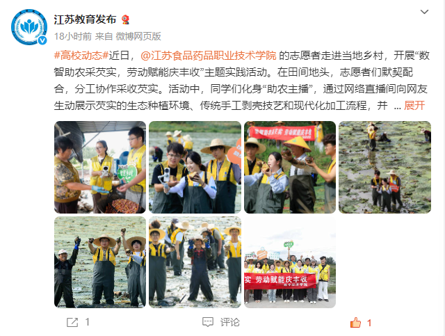 9月22日,江苏食品药品职业技术学院数字经济学院大学生来到淮阴区南陈集镇头堡村,开展“数智助农采芡实,劳动赋能庆丰收”主题活动,大学生和种植户一起采收芡实,通过网络直播间介绍芡实采收和加工、食用价值等,旨在提升大学生用专业知识服务农业能力,拓宽特色农产品销售渠道,助力农民增收。