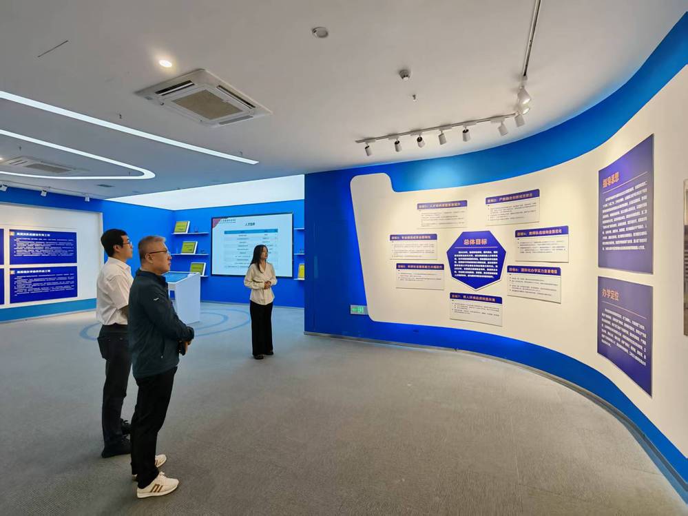 在质量管理办公室副主任石静的陪同下,刘杰一行先后参观了山东商业职业技术学院校史馆,详细了解了学校第一期双高建设的思路、举措及成果,随后先后参观了云计算技术及应用系工坊、数字营销系综合实训基地、冷链物流与供应链系智慧冷链物流实训基地,详细了解了冷链物流与技术管理专业群及大数据技术专业群的实训基地建设情况。
