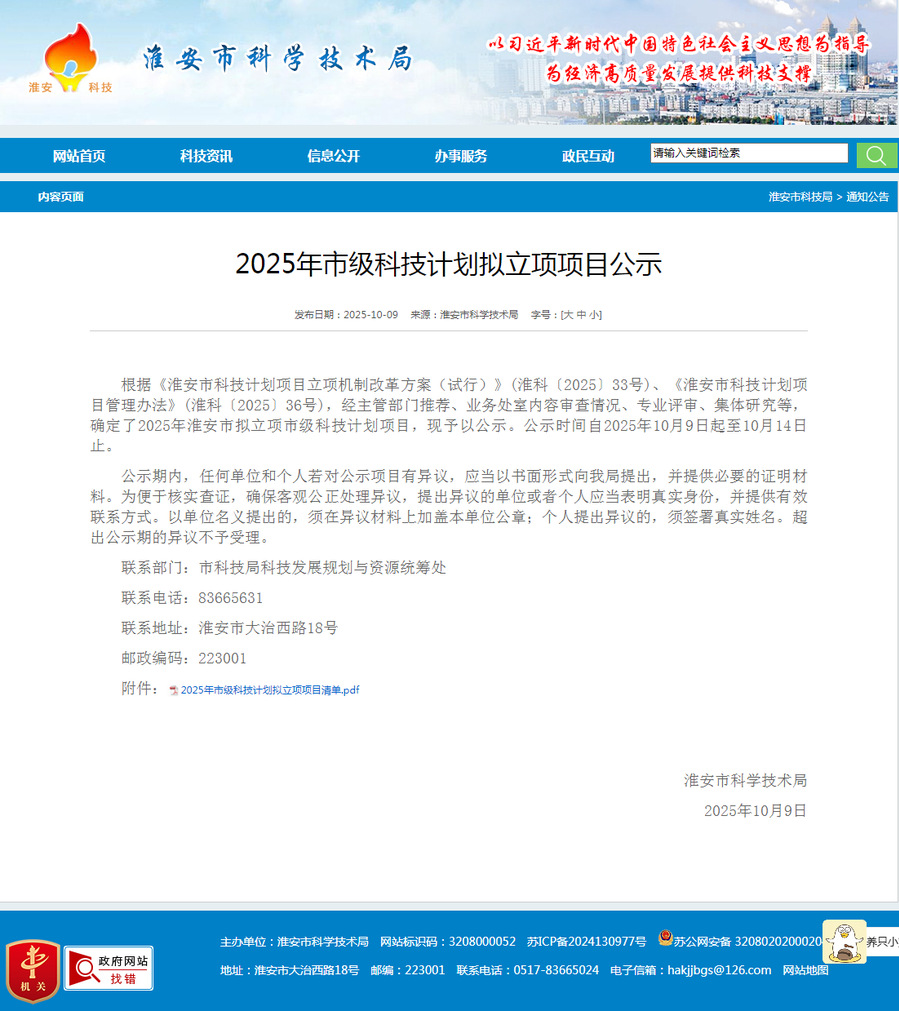 近日,淮安市科学技术局对2025年度市科技计划拟立项项目进行了公示。我校组织申报的5个项目成功进入公示名单,其中包括科技公共服务平台项目1项和基础研究计划项目4项,彰显了我校在科研能力建设与服务地方发展方面的显著进步。