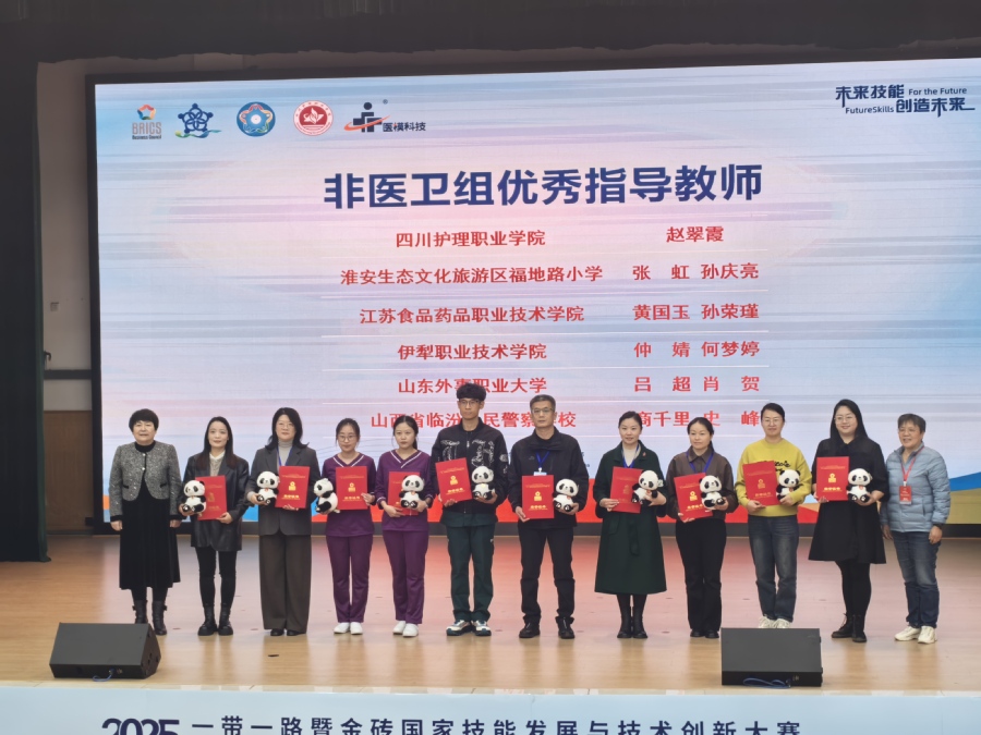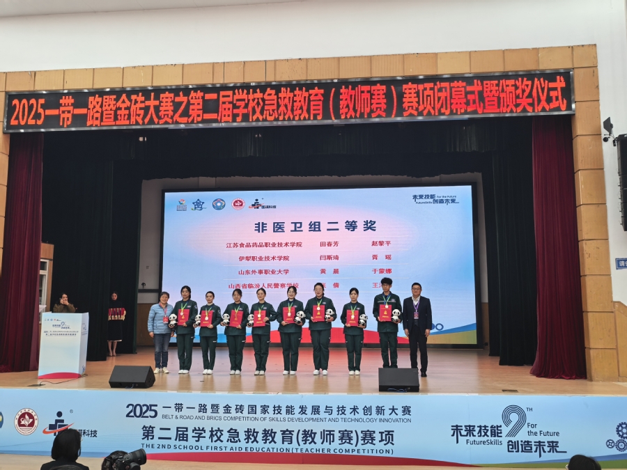 11月17日,2025一带一路暨金砖国家技能发展与技术创新大赛第二届学校急救教育教师赛决赛在成都圆满落幕。我校选手田春芳、赵黎平在比赛中表现亮眼,凭借扎实的急救知识、技能与默契配合,荣获非医卫组二等奖第一名的优异成绩;黄国玉、孙荣瑾荣获“优秀指导老师”,学校被授予“优秀组织奖”荣誉称号。