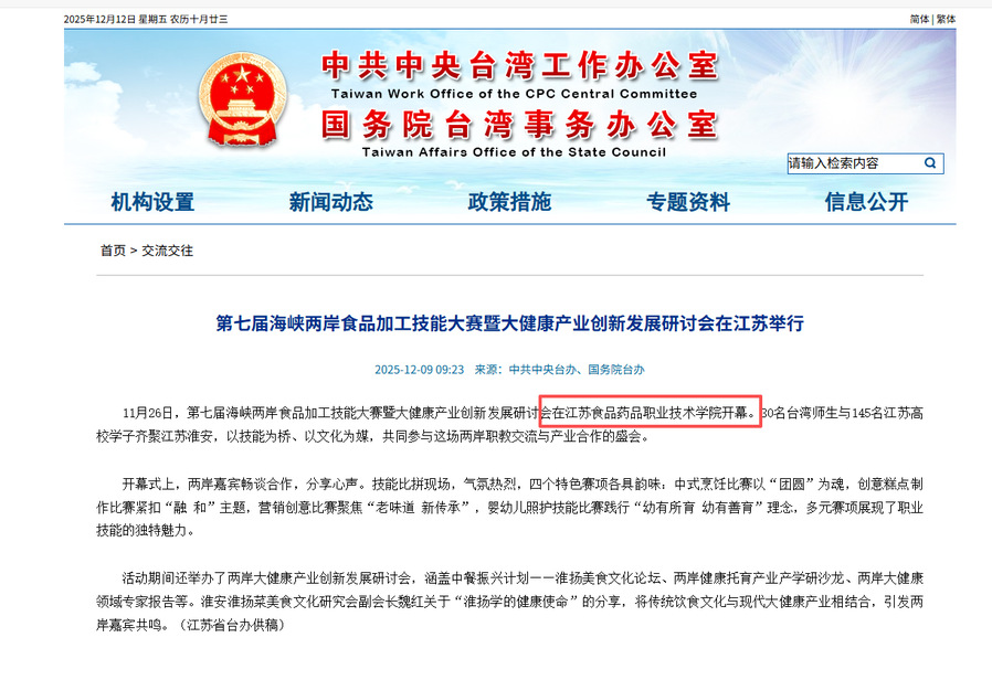 【中共中央台办、国务院台办】第七届海峡两岸食品加工技能大赛暨大健康产业创新发展研讨会在江苏举行