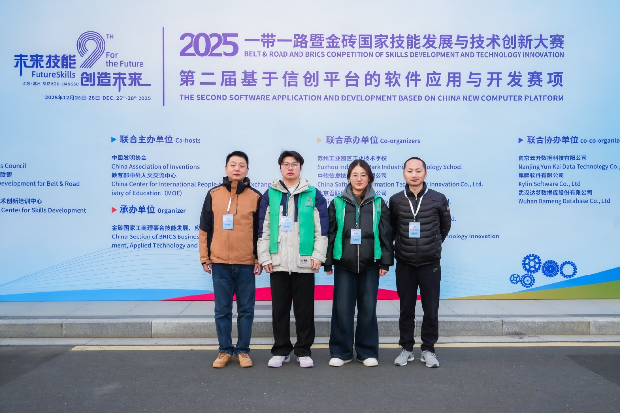 12月27日,2025年“一带一路”暨金砖国家技能发展与技术创新大赛第二届基于信创平台的软件应用与开发赛项决赛在苏州工业园区工业技术学校圆满落幕。我校人工智能学院智能241班王照祥(指导教师:张垒)、李思雨(指导教师:孙伟)两名同学成功入围总决赛,与来自全国的145支高职院校代表队、318名选手同台竞技,最终凭借扎实的专业功底和出色的临场表现,分别斩获高职组二等奖、高职组三等奖,我校荣获“优秀组织奖”。