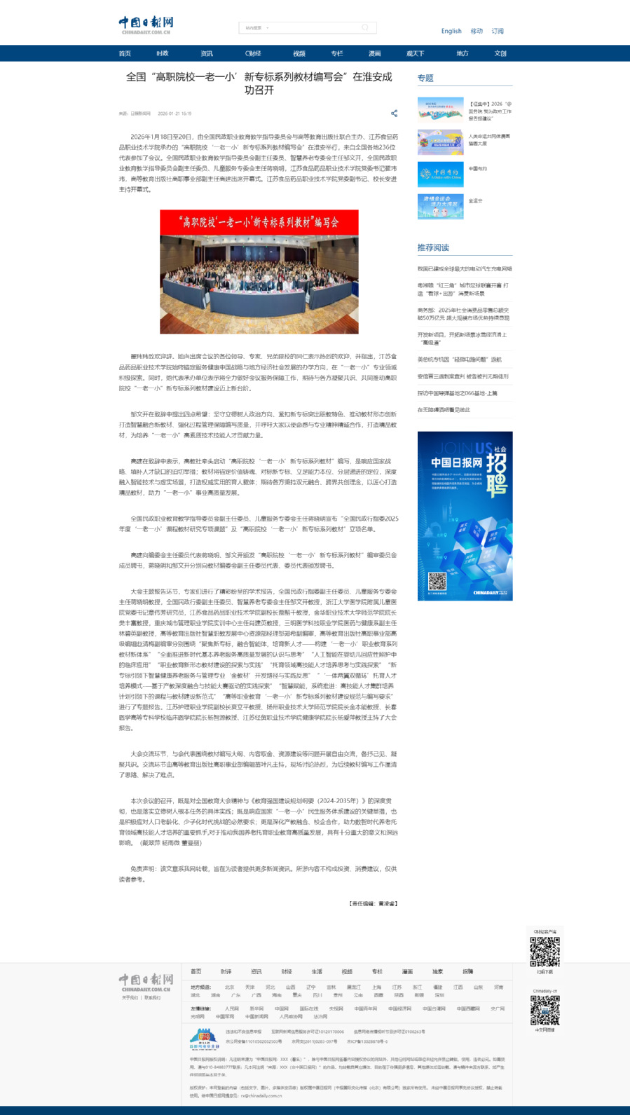 【中国日报网】全国“高职院校‘一老一小’新专标系列教材编写会”在淮安成功召开
