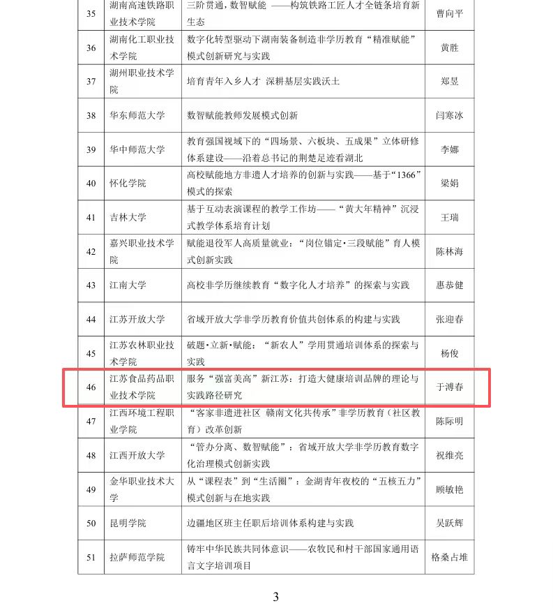 近日,教育部正式公示第三批高等继续教育领域学习型社会建设重点任务名单。我校继续教育与培训学院组织申报的“服务‘强富美高’新江苏:打造大健康培训品牌的理论与实践路径研究”项目,经严格评审,成功入选“非学历教育改革创新任务”培育建设名单。这是我校首次承担教育部高等继续教育领域学习型社会建设重点任务,标志着学校在服务全民终身学习、对接区域发展战略方面迈上新台阶。