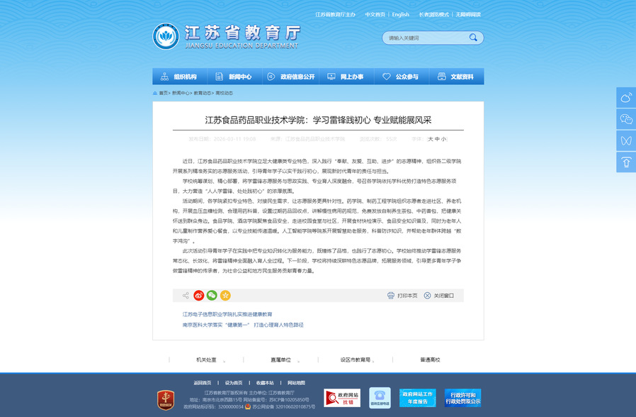 近日,江苏食品药品职业技术学院立足大健康类专业特色,深入践行“奉献、友爱、互助、进步”的志愿精神,组织各二级学院开展系列精准务实的志愿服务活动,引导青年学子以实干践行初心,展现新时代青年的责任与担当。