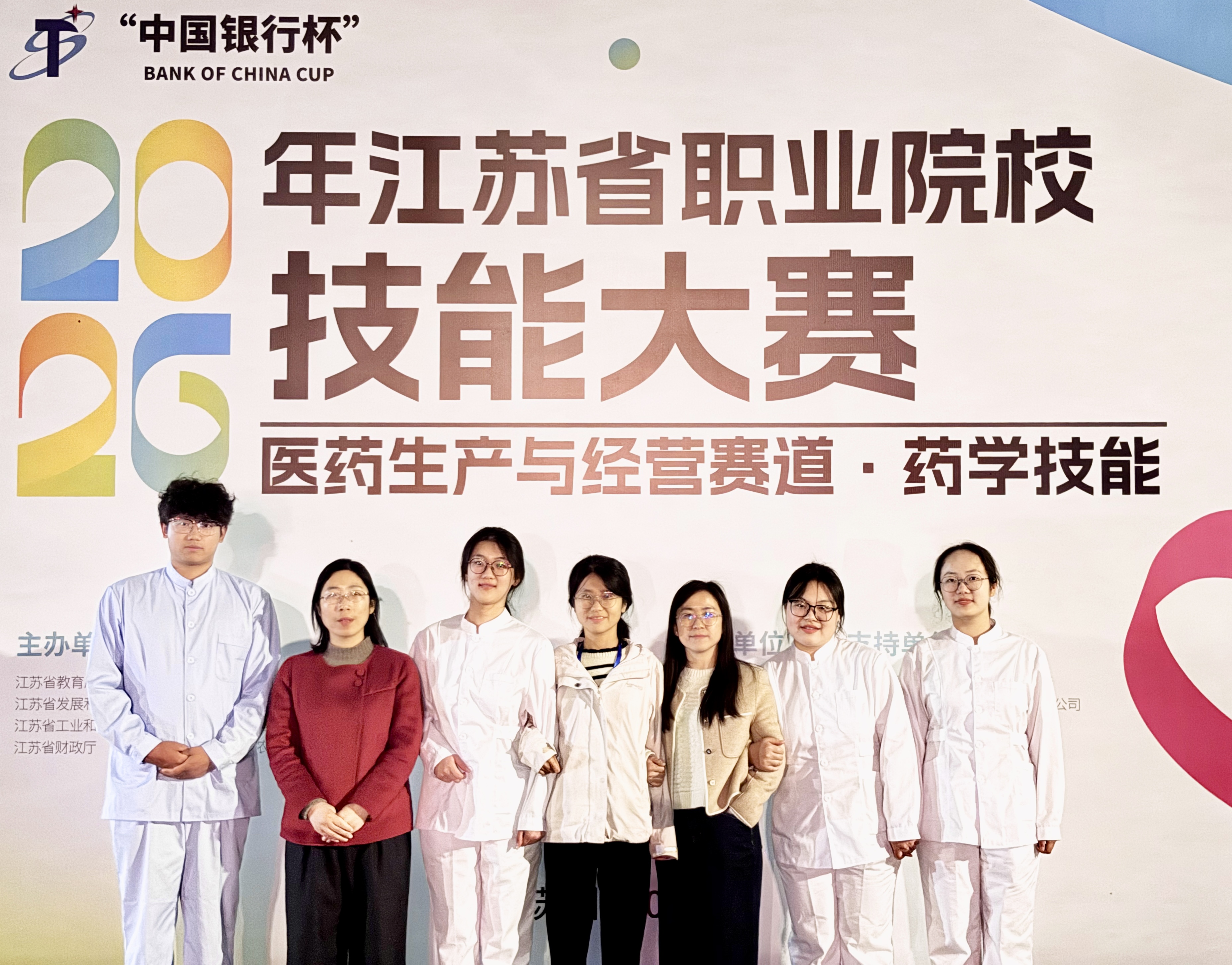 4月11日至13日,由江苏省教育厅主办、苏州卫生职业技术学院承办的2026年江苏省职业院校技能大赛高职组“药学技能”赛项圆满落幕。在赛项负责人杨宝卫,指导老师樊鑫梅、葛蕾的精心指导下,我校药学院学生张嘉悦(药本231)、张雅慧(药本241)、俞晨怡(药本241)凭借扎实的专业知识、精湛的操作技能和出色的团队协作,从全省20所高职院校的60名参赛选手中脱颖而出,荣获省赛一等奖第一名!